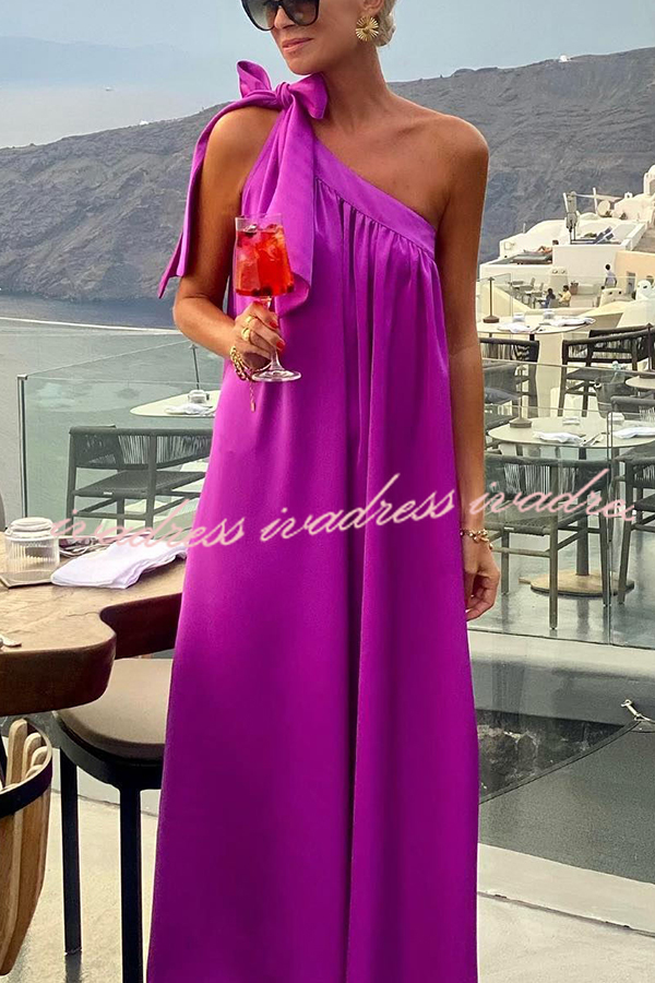 Beach Party Satin One Shoulder Bow Detail Loose Maxi Dress