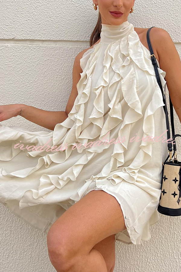 Oh So Sweet Chiffon High Neck Ruffle Pleated A-line Mini Dress