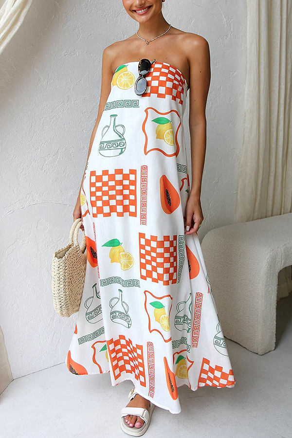 Sandy Silhouette Unique Print Strapless A-line Maxi Dress